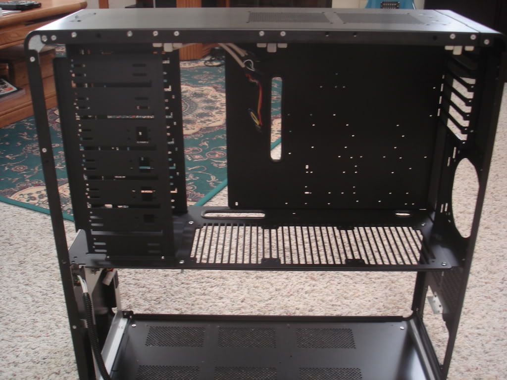 Her naked, I ended up taking out all the hard drive mounts and psu support plate on the bottom also since I won't be mounting any drives down there, and I prefer the looks without the psu support bracket.