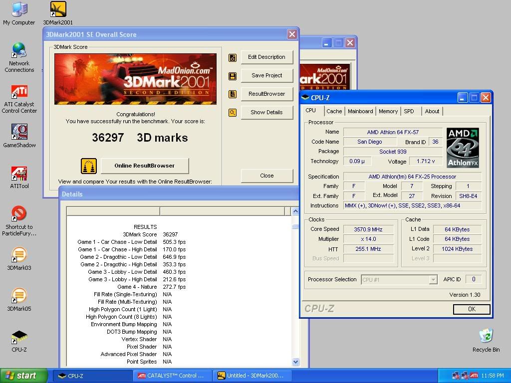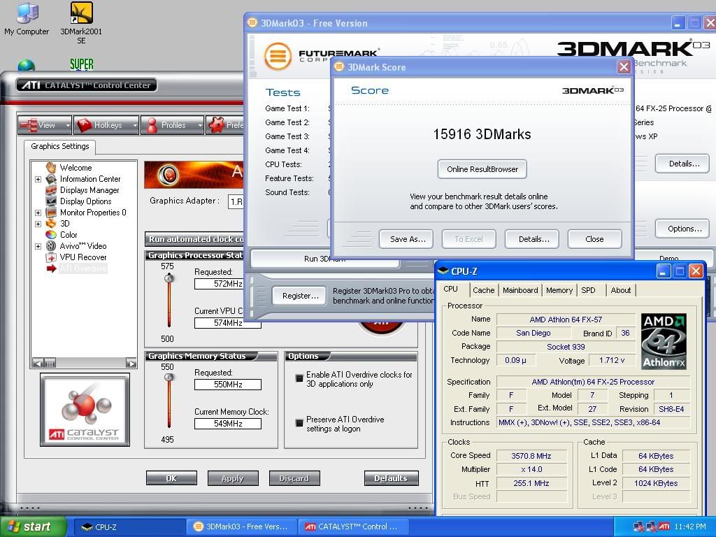 Next I overclocked the FX to 3.57Ghz and maxed the card in Control Center which happens to be 575/550 up from the default 500/500 factory clocks. Here's what happened.