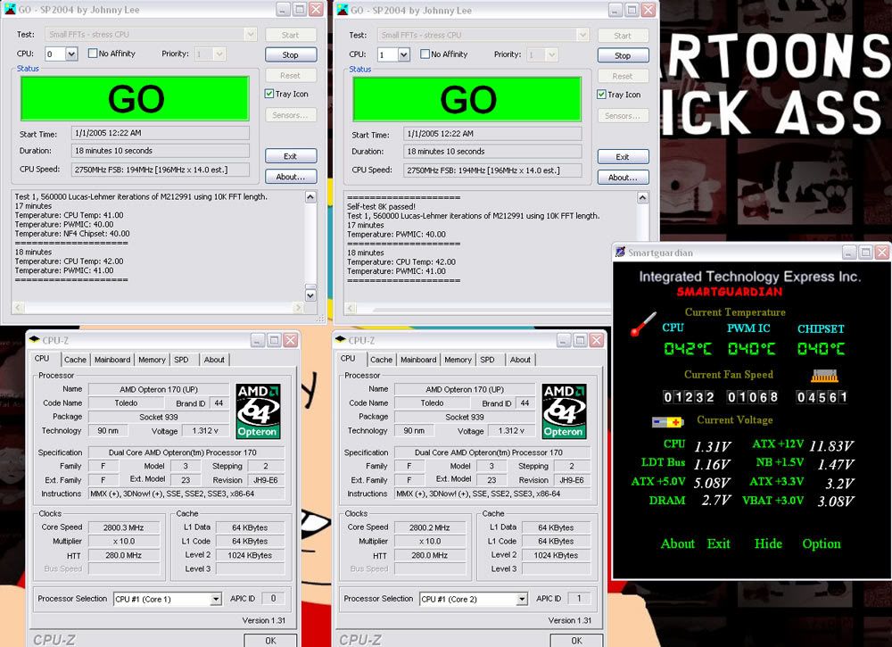 I get ya buddy, but having BH-5 makes it near impossible. The maximum it'll do is about 263 MHz stable. Still, IMO 2808 MHz is hardly shabby. So you think i should still burn in to lower volts? If so, do i start burn-in at 1.42v, or lower it first, if you get what i mean?