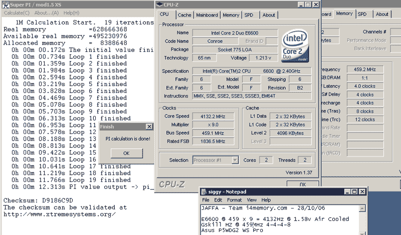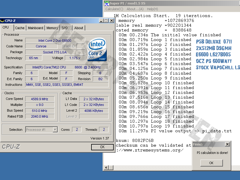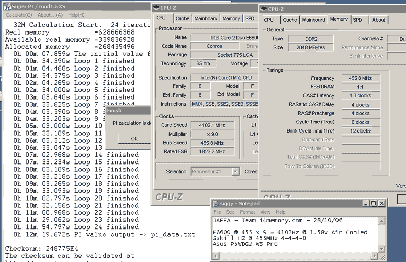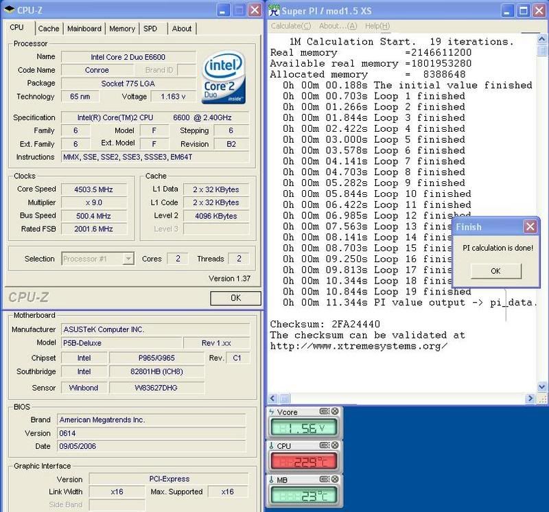 SuperPI 32M gave error in 21th pass with same clocks and voltage, but I think it was more likely caused by too tight chipset timings.