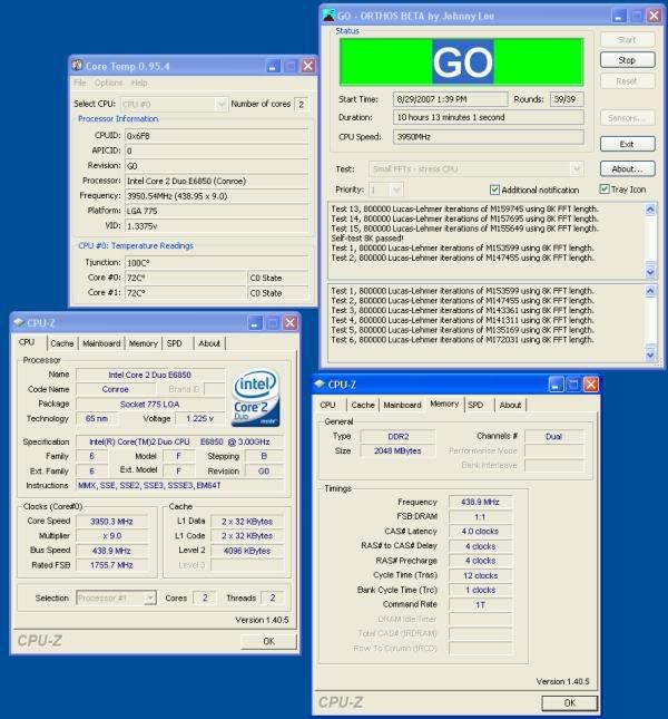 Orthossing now at stock speeds will edit this post later on with some OC's... nice thing is I can run 3ghz already with way lower chipset voltages than with my E6600