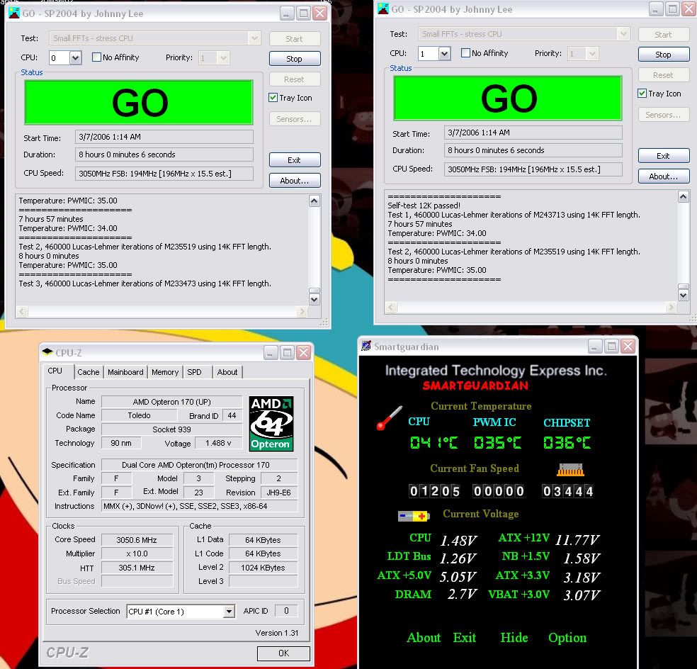 Most 170s have to jump an invisible wall to make it to 2800. I think his real vcore is somewhere around 1.52v (DFI overvolts by 10-30mV, despite SG readings). It does seam high, but then again, everyone here reports cpu-z/SG vcore so he's pretty much on par. Have you tried lower vcore or high speeds?Quote: