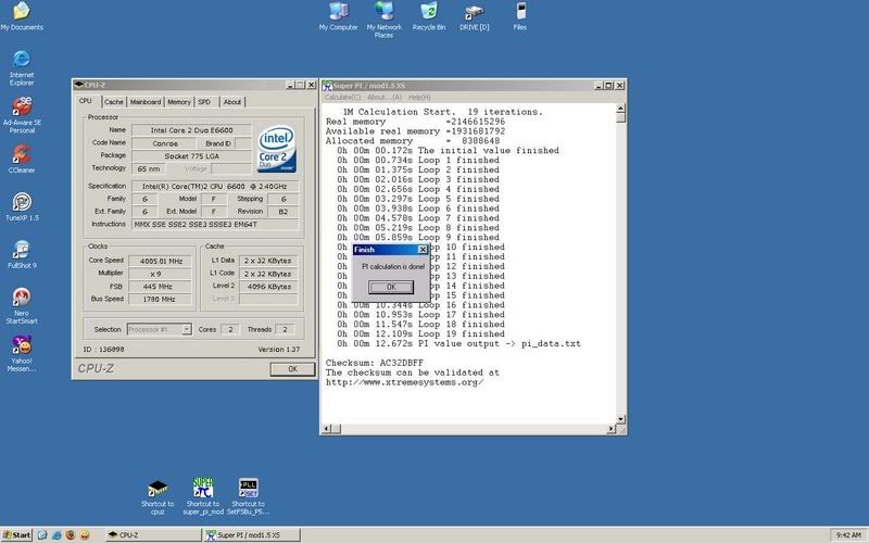 CPUz v1,37 launches with a driver error everytime with this XP installation, I'll run it later or tomorrow on another installation :)