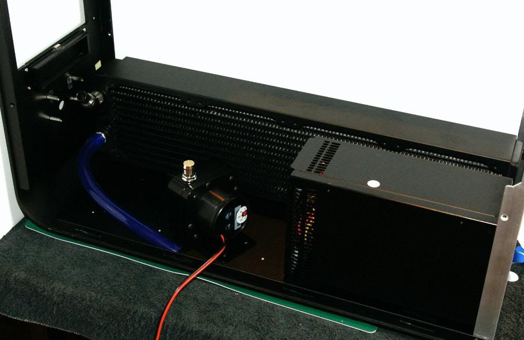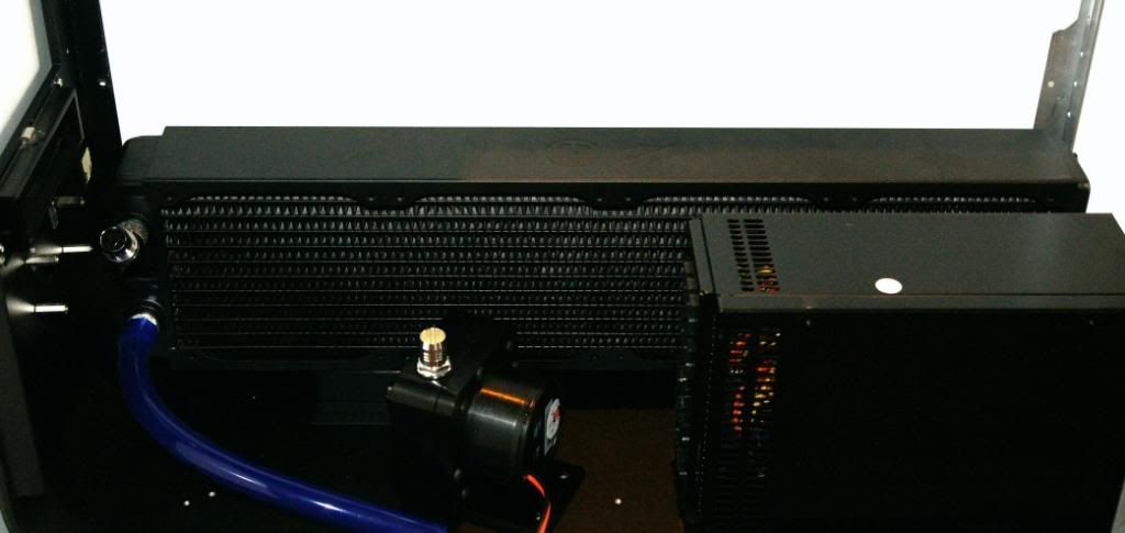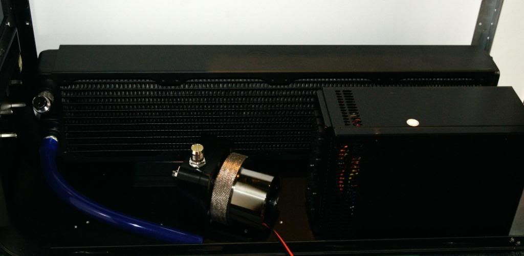 Now the fun part. I knew early on that I would have a cable problem with the 24 pin due to the size of the Feser and the Zeus PSU. The cut out in the M|M midplate is completely blocked by the PSU so I decided to flip Rad and the PSU. However, I have always been a pull proponent and not push. I have two options; 1. Go with push on the fans and route the 24 through the midplate or 2. Stay with the pull and route the 24 behind the Res and through the front and down.