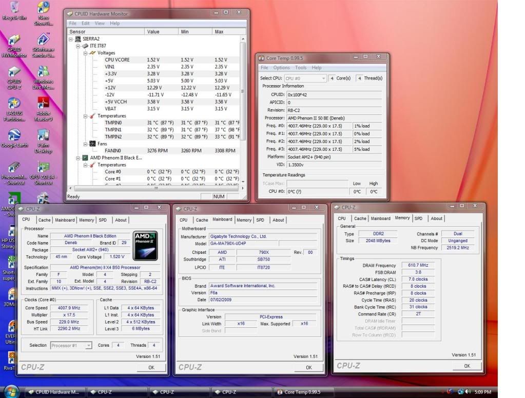 Also this Pair of Viper9600's @ 1220mhz while using a 550 unlocked . The M3A 79-T deluxe barely did 1180mhz on the ram with Both of 720 and 550 @Stock locked cores.