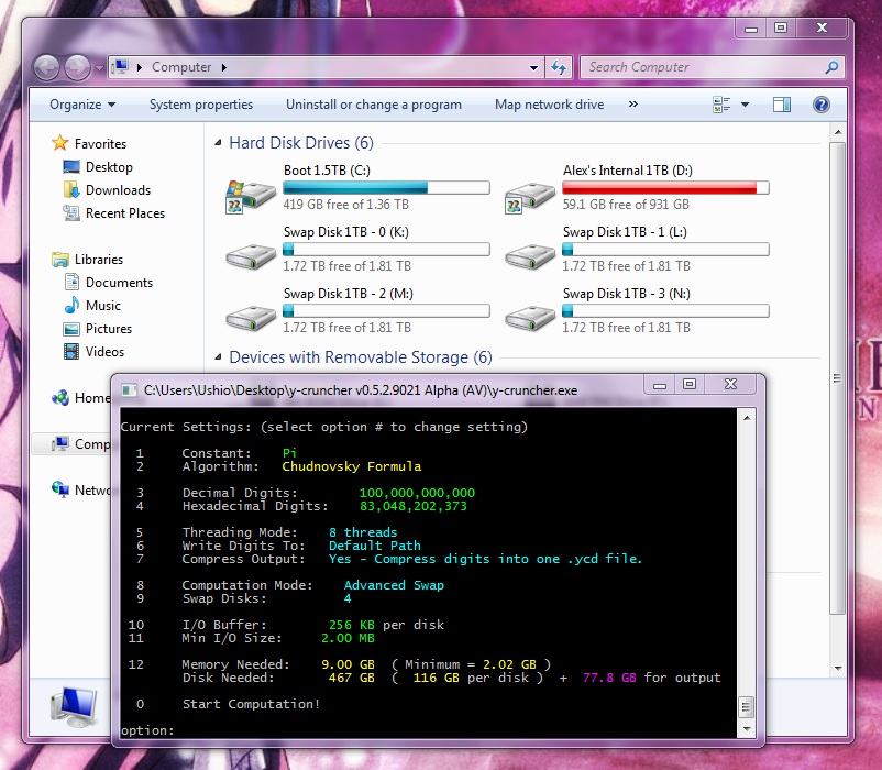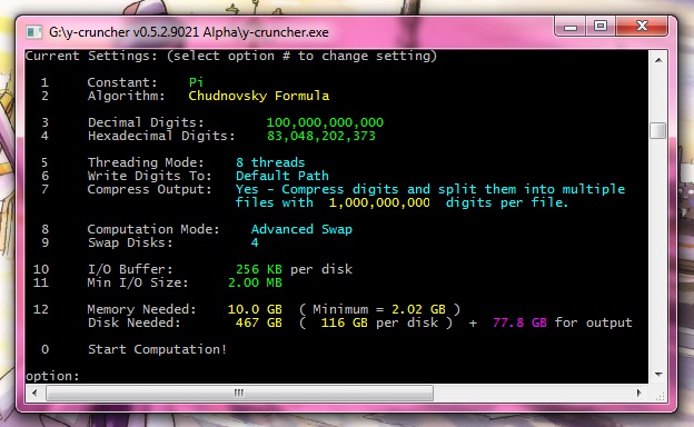 I'm using the y-cruncher v.0.4.4.7762b version. Some Large Benchmarks: