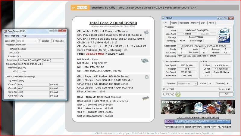 First time poster here. Also fairly new to OC. Quick question...just upgraded my box to the P5Q Deluxe and a Q9550 (C0, of course). I am targeting a 100% stable 24/7 OC of 3.4 GHz. Actually, I've got that, but I think my Q9550 may be a dog...or a vcore blackhole to be more precise. I had to up the VCore to 1.315V in the bios to get it prime stable. Does that sound reasonable? I haven't touched any of the more esoteric settings like the CPU PLL, etc...does that help reduce VCore requirements. One thing I did was make sure Load Line Calibration was off...my first attempt got me a much lower vcore with LLC on, but when I read the technical details about the purpose of vdroop, I decided it wasn't worth it, even if I had to run the volts much higher. Just looking for some advice about lowering the vcore and still keeping the stable OC.