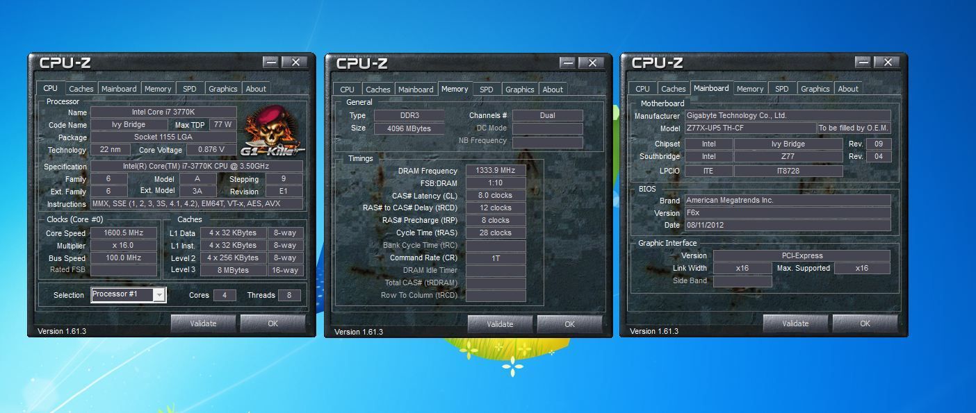 First off the Z77X-UD5H running 2x4GB Samsung Green ULV@ 2600 Cas 10 T1