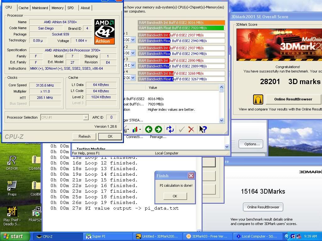 I am getting 2800 on stock volts and stock heatsink. CABGE0515spmw. I am running 560 on the x800xt and I have only gotten 30405 in 3d01 so far...