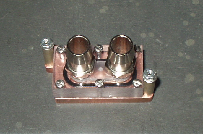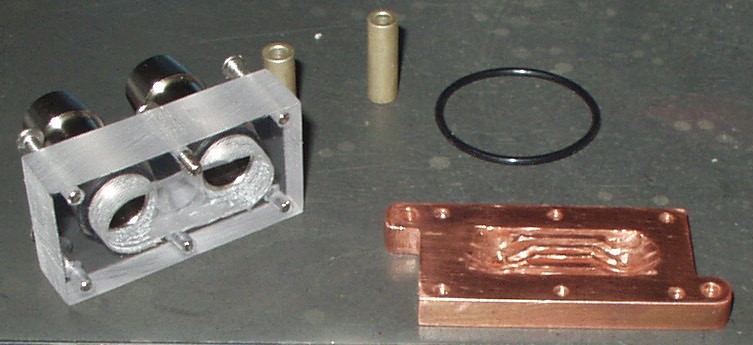 Here's my mosfet block. Only had cheapo drill-press, B&D RTX (dremel), and hack-saw, files, etc.... I just used the stock TIM pad, as the mosfets definitely weren't level with each other. It's at the end of my 2nd loop - 8800GT>SB>NB>PWM. D-tek 1/2" G-1/4" barbs