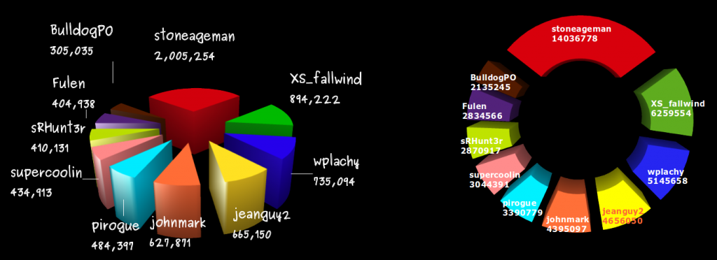 Yesterday I reached #13 based on daily numbers :) Finally resolved issues - had to disable Xfire, otherwise it produced errors and stuck WUs... I have one more GPU :rolleyes:, maybe if I add it, I'll make it into the pie :)
