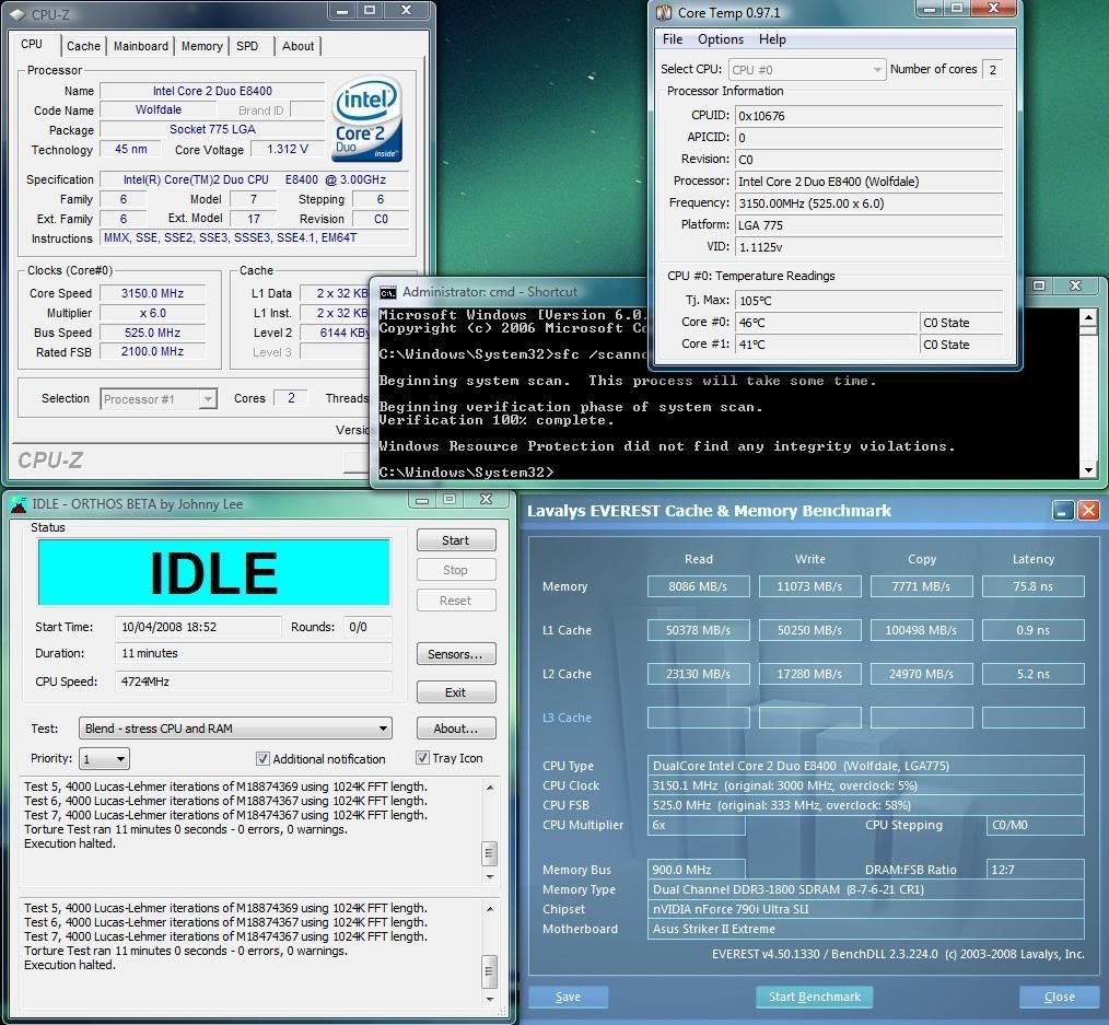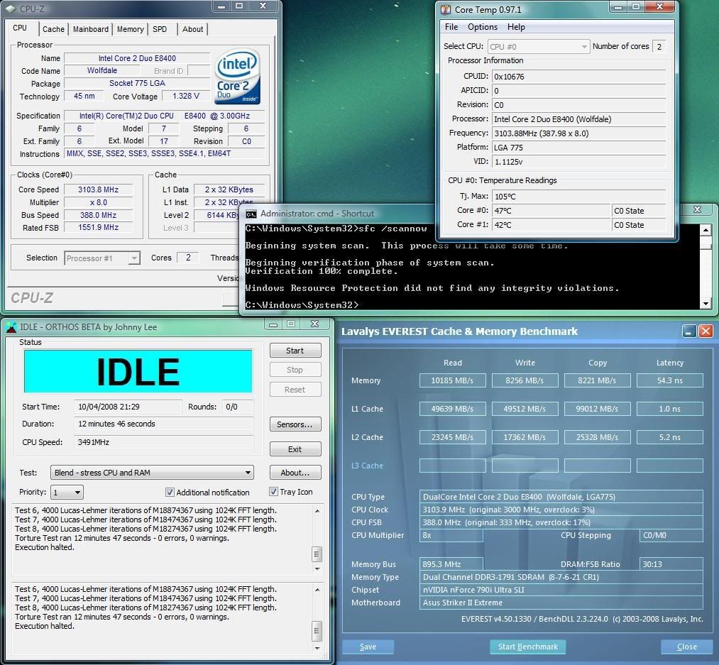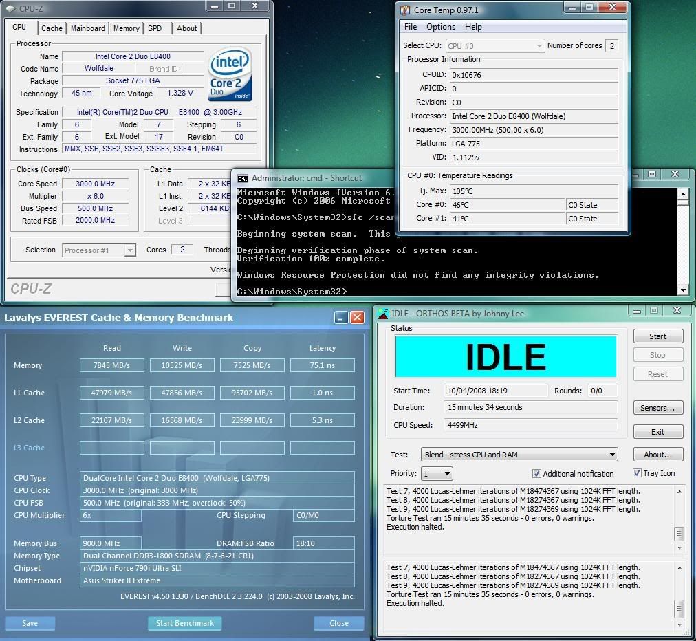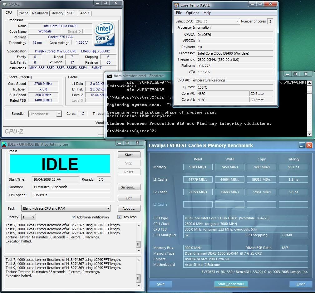 Sure I'll try and go into finer FSB for the E8400, with a short ORTHOS run and a screeny if I manage to boot into windows.