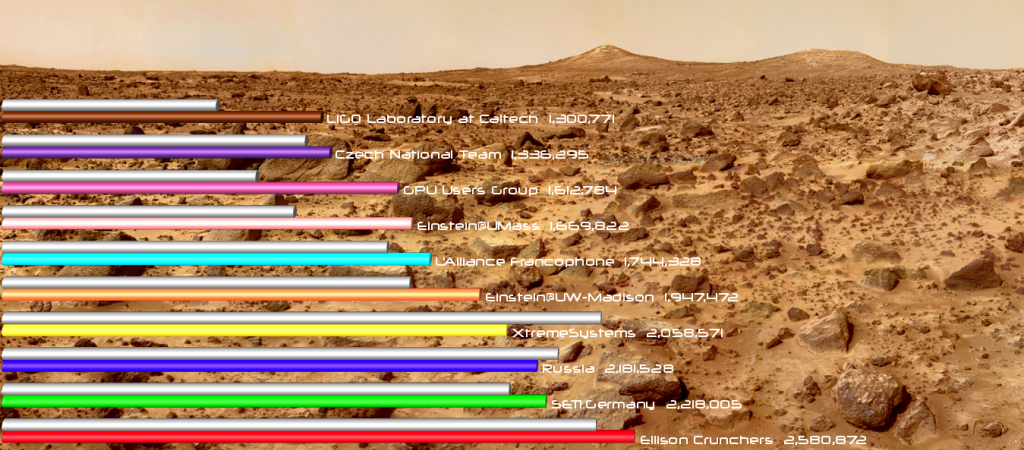 If I am looking at this right, from the Server Status page, 8 of us on this team are dominating a project with 37,317 active participants. :D