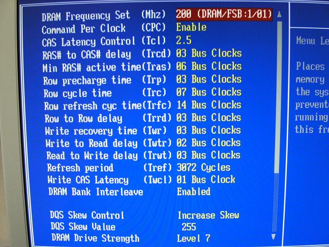 I want to know what is the best setting for this ram, I used DFI NF4-Ultra D Bios 414-3.