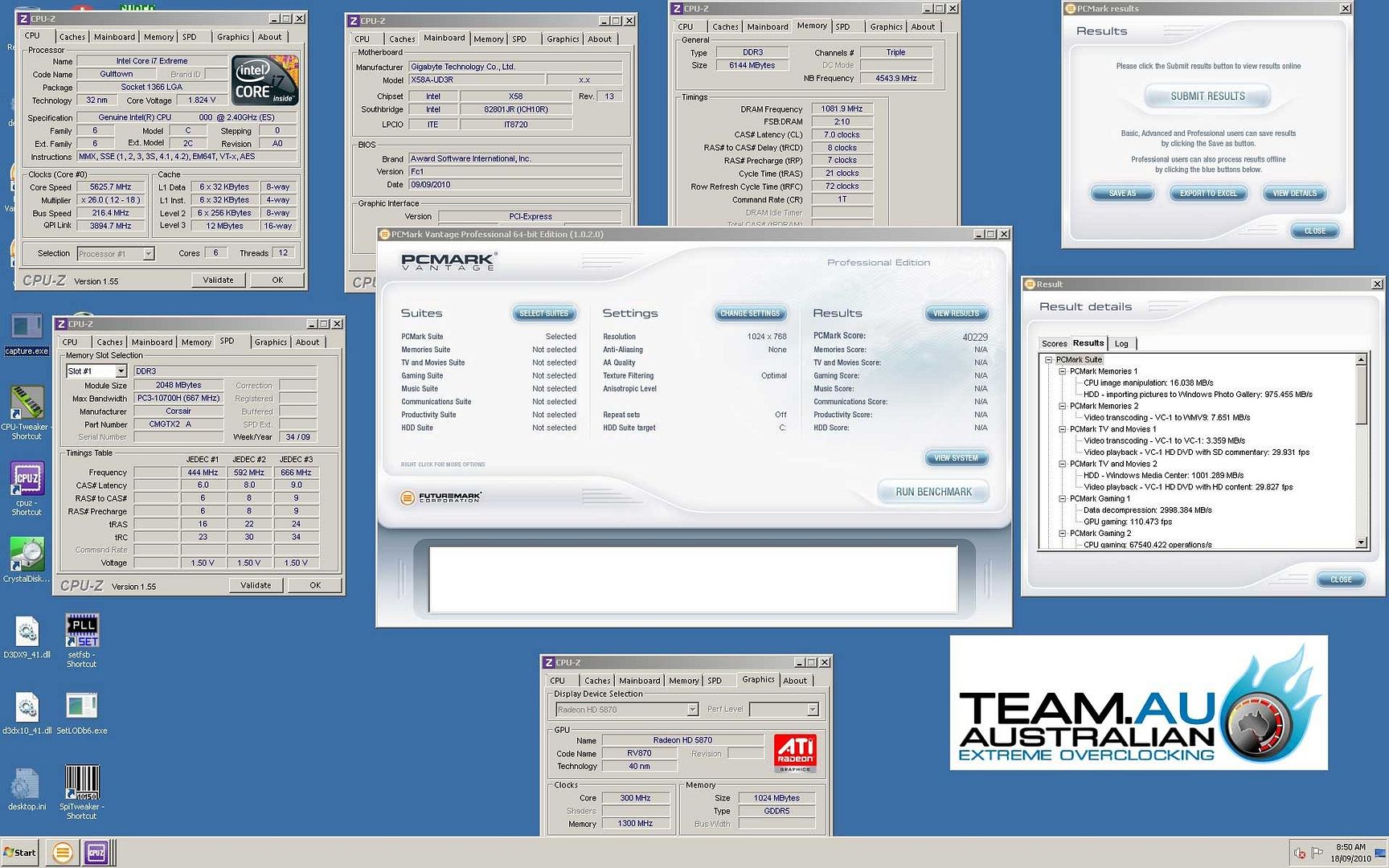 - GIGABYTE X58A-UD9 with 980X @ 5.55ghz