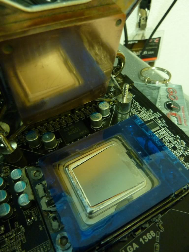 My towers on the other hand will still get IX as its simple enough to lay them over for the reflow and well worth the return. The best advice I can give is to double check you mounting pressure and make sure you case is level. You shouldnt have to do the reflow out of the case as your say you have a horizontal mobo mount. I normally wouldnt suggest this in this day and age, but if you are really getting some out of wack core temps you might want try and check the depth of the concave surface of you IHS. It might be bad enough to warrant a lapping, but thats kinda rare on a i7. Maybe your block wasnt machined quite to spec or maybe even you mounts are warped by a hair or two. Do a test mount with a cheap TIM and really inspect the spread. If its just goofy then you know your problem is hardware related and not just bad pressure mounting or an uneven case during reflow. Good luck with it.