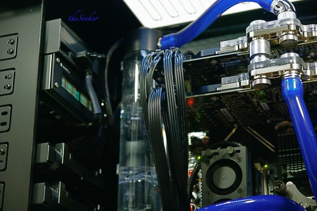 I am not satisfied with the wiring but I need to play some games an OC this beast. It will stay this way until I return from my travels. Hopefully, Nils will have the new sleeving ready and I can begin again. I am very happy from a performance and cooling standpoint. I am a confessed M|M-aholic, a Feser-aholic and H20-aholic.