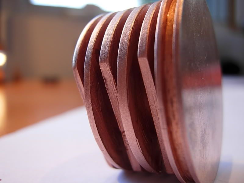 also look what i did today. the granddaddy of all evaps :p: not including blasters hehe. its larger diameter, huge, and will be great for a cascade. its not nearly complete, got loads of machinign to do. (i.e. havn't even touched the base yet... it will be machined as thin as i can get it, hopefully as thin as the oether evap in the picture)