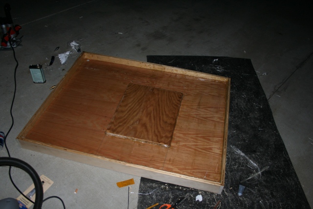 Bunch of 3/4" plywood stuck together and 4x4 woods for leg. I might put additional torsional rigidity on it by putting bracing wood of 2x4 if i need it.