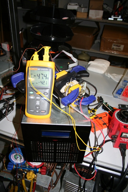 On a side note: If I do not wait for the vapochill to get the quad well below 0c before powering up, the quad overpowers the unit and temps are in the 40's (positive), even on the vapochill unit.