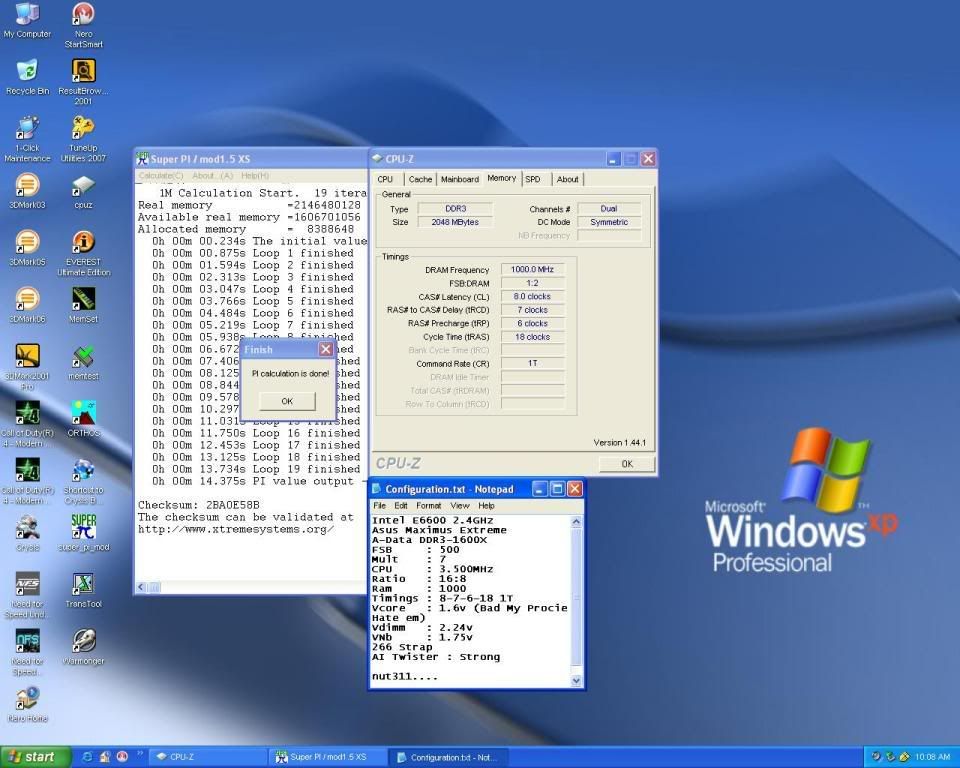 - Nº 2 : Stephen_Lo reached 1208 MHz with 1024 MB of Micron Technology [Details]