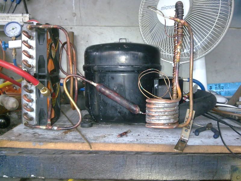 3 - No, no it wouldn't be very good for a chiller this size, you want at least a 6,000btu condenser (Remember a hermetic compressor will be adding 30% of its own load on the condensor!)