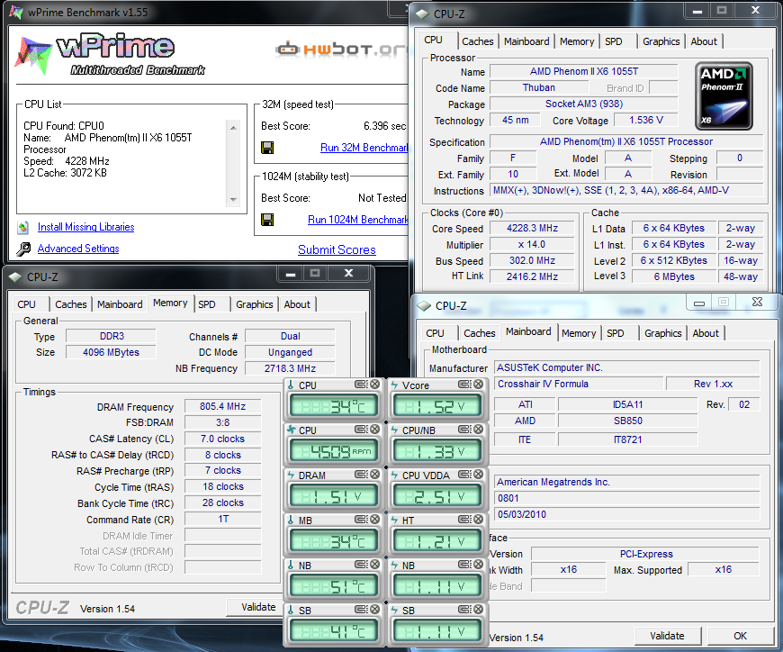 I doubt it will carry much of a load @ that NB but It did clock to there on the third try, of course the HT ref was twitching a bit. This same chip in the MSI 790fx-GD70 and CHIII wouldn’t clock the NB up to even 3.1GHz so the CHIVF is freeing this turban up a little. I figure I have too much vcore in but it was the first test, kinda.:)