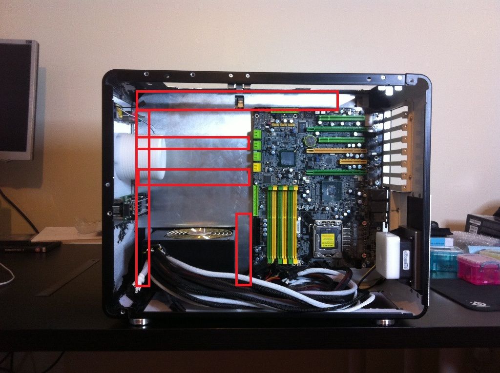 The RED indicated where the cables will be placed, going to use cable holders to hold them in place so they will make nice neat lines.
