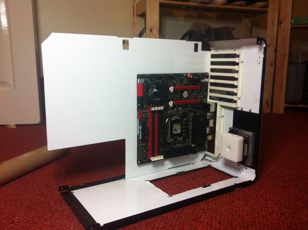 The case with the motherboard tray fitted and the test mod and PSU used to see how it all looks