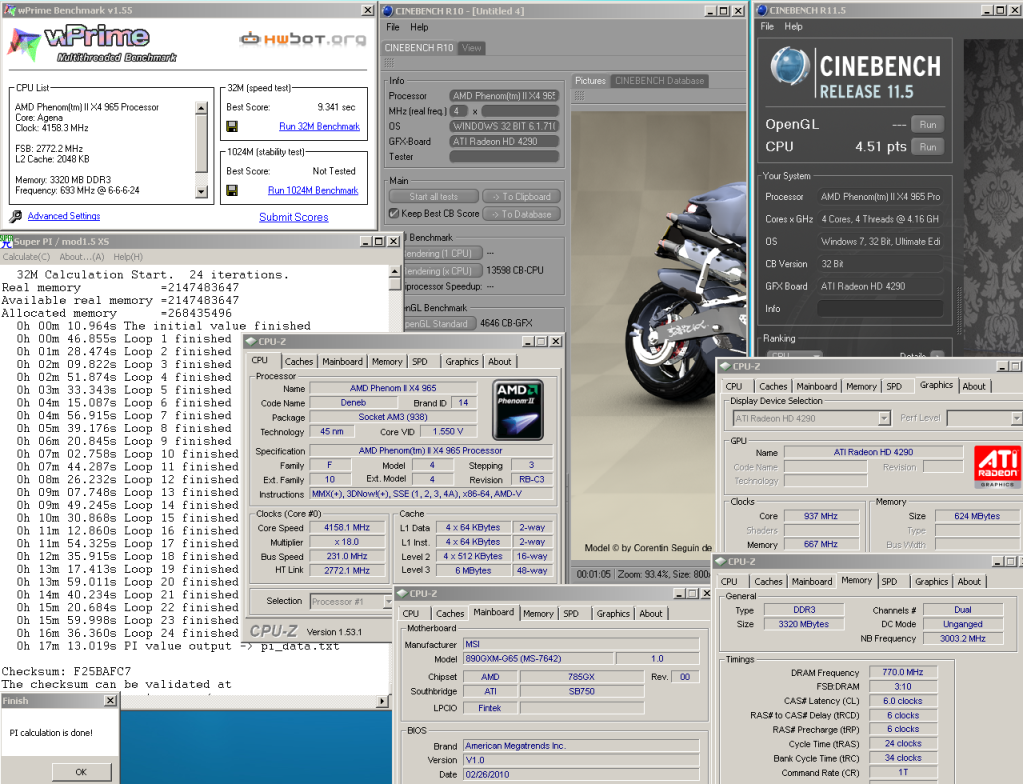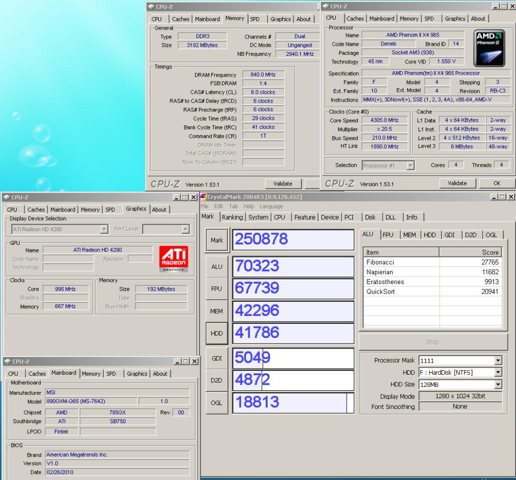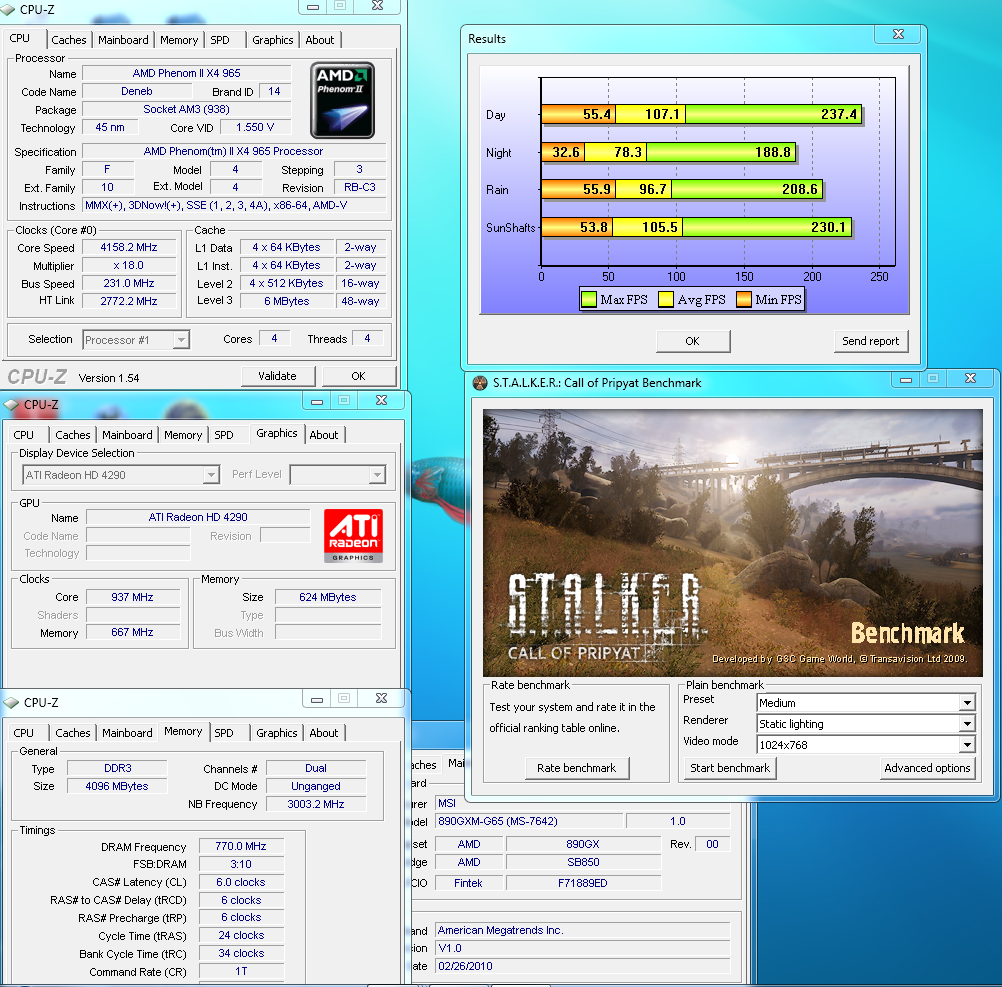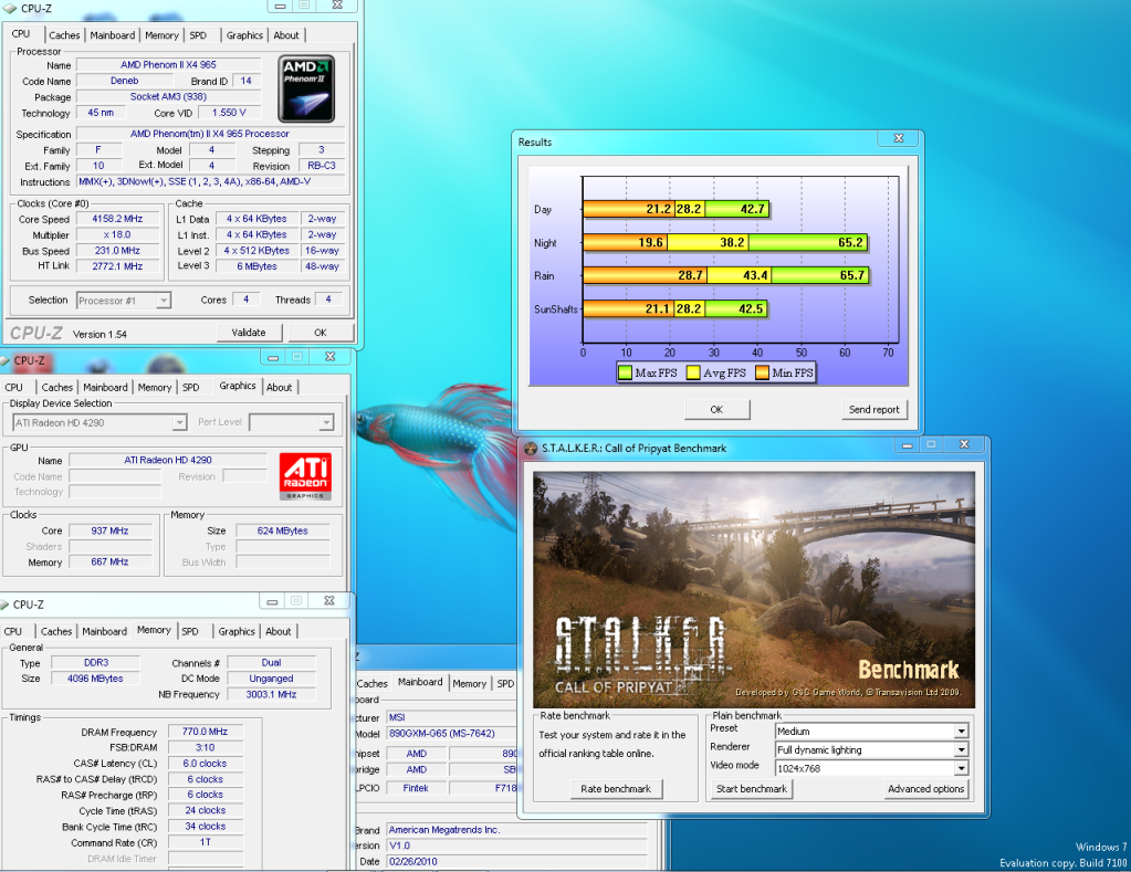 I ran some Stalker bench tests also plus I posted my best CrystalMark score so far on this MB. All these tests were on Windows 7 RC.