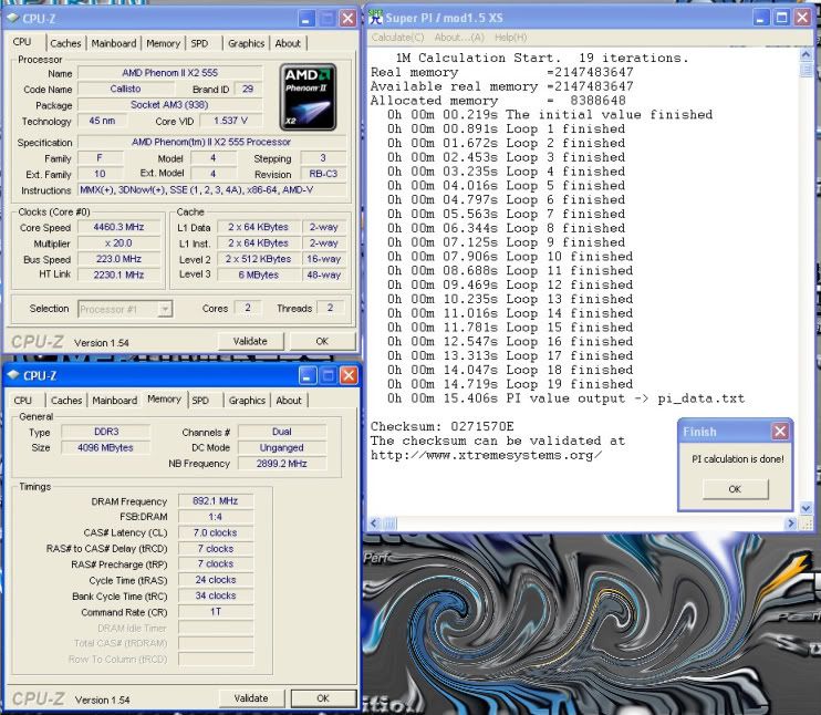 The 555be is installed in the MSI 890GXM-G65 as a native dual core. I removed the chilled water cooling. The system is now water cooled at room temperature (68-70F) for these tests posted below.