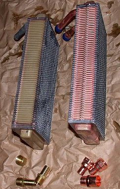 you might want to investigate the heater matrix (or whatever you call a heatercore in flemish) for on opel manta or kadett - brass/copper versions of them exist.....Quote:
