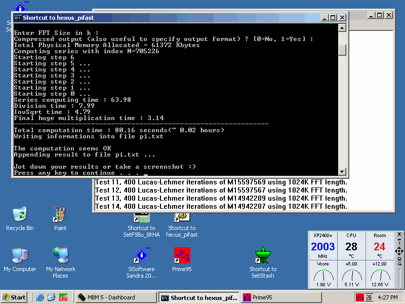 PiFast and Prime95 ran fine at the above speed and 1.90v but Folding required a bump up to 1.95v to be stable.