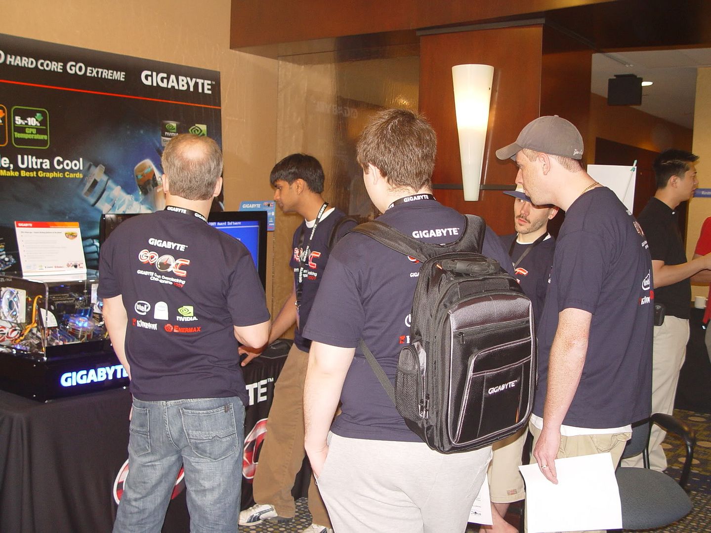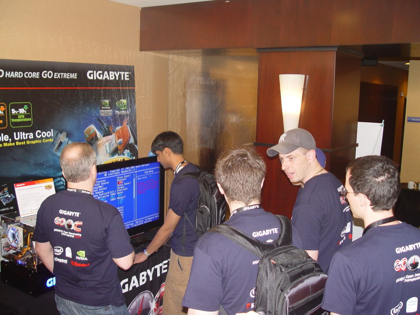 i too found something in my package...photos. like this one of Gautam confused as hell with the display system when he couldn't overclock it...this confusion carried over into the main room for the competition :D