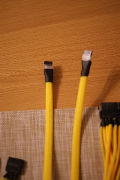 Because I will be using power cable extensions for everything (don't want to loose warranty on brand new PSU), so SATA power cables will be also sleeved: