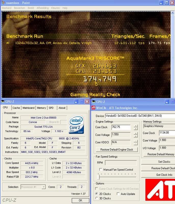 [hwbot] 174749 - E6600 @ 4424 MHz - X1950XTX 762/1134 (stock air) [/hwbot]