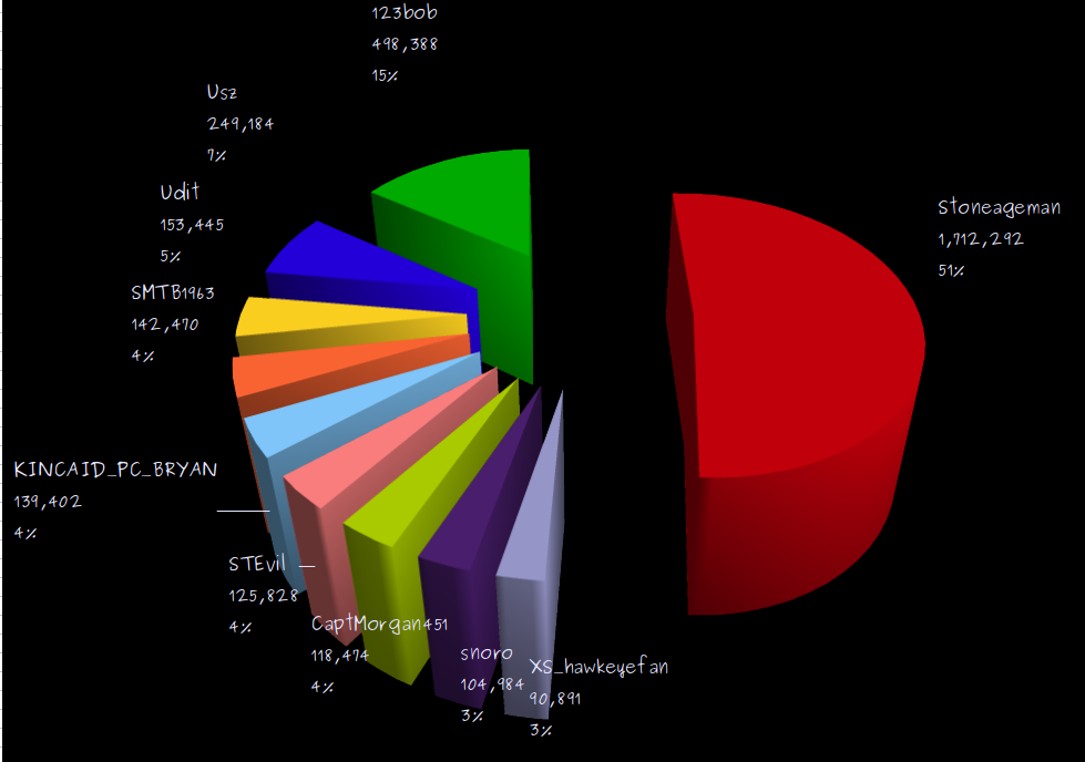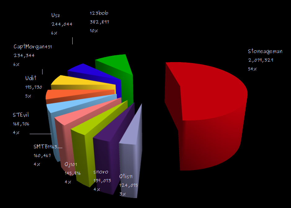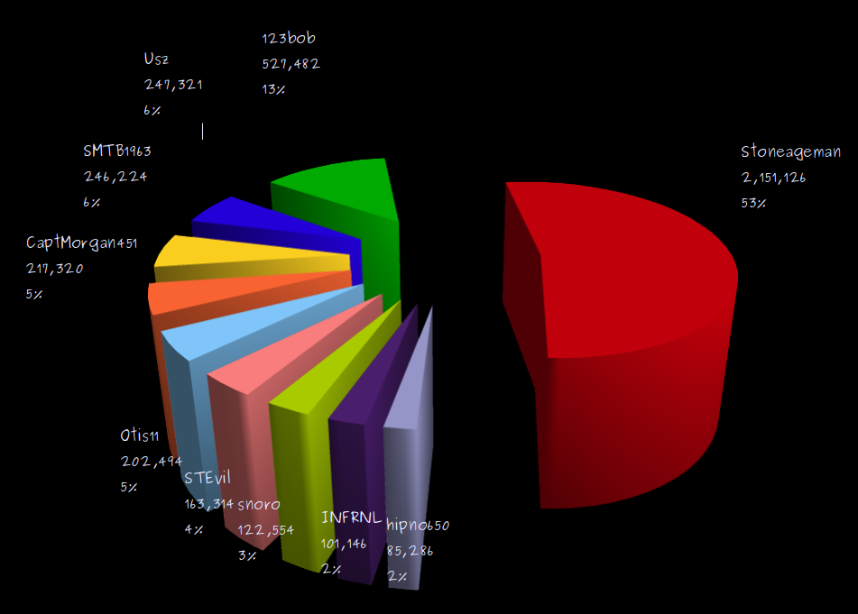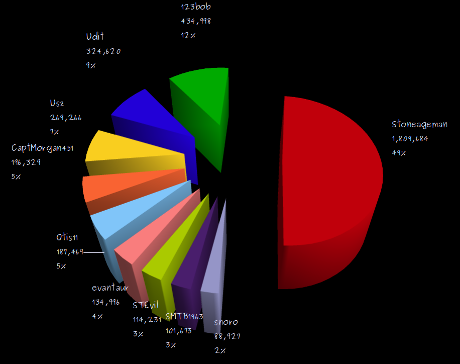 We made 3,390,500 today which is great :up:, considering only 10 members returned any points :( The CNT team are currently just 300 days away from knocking us off the #1 spot :eek: