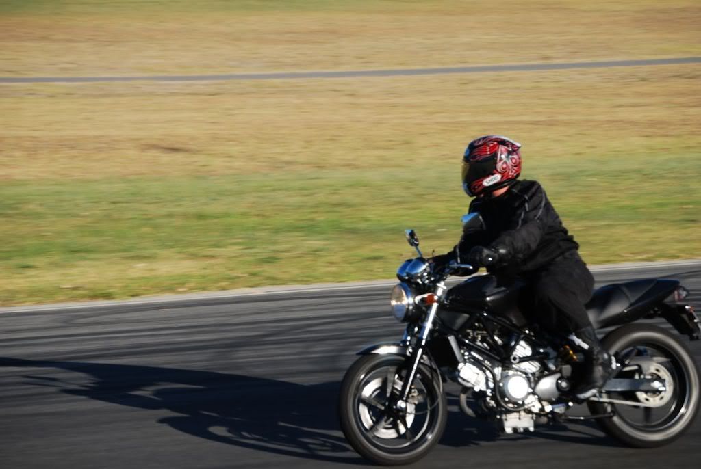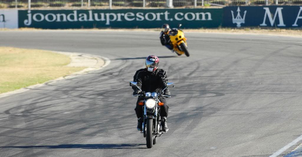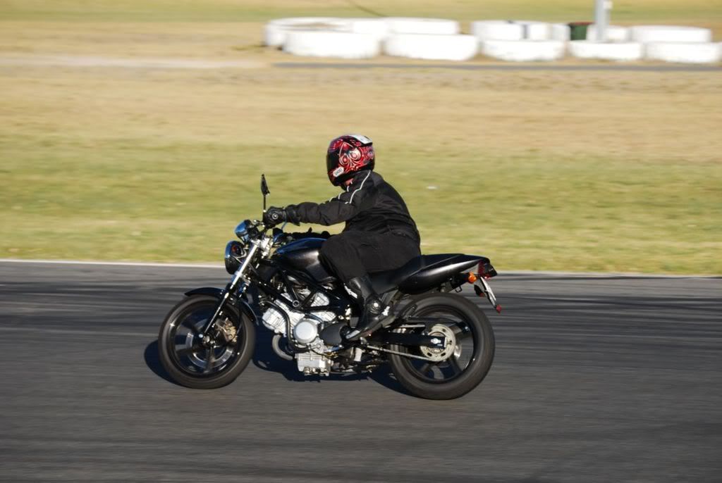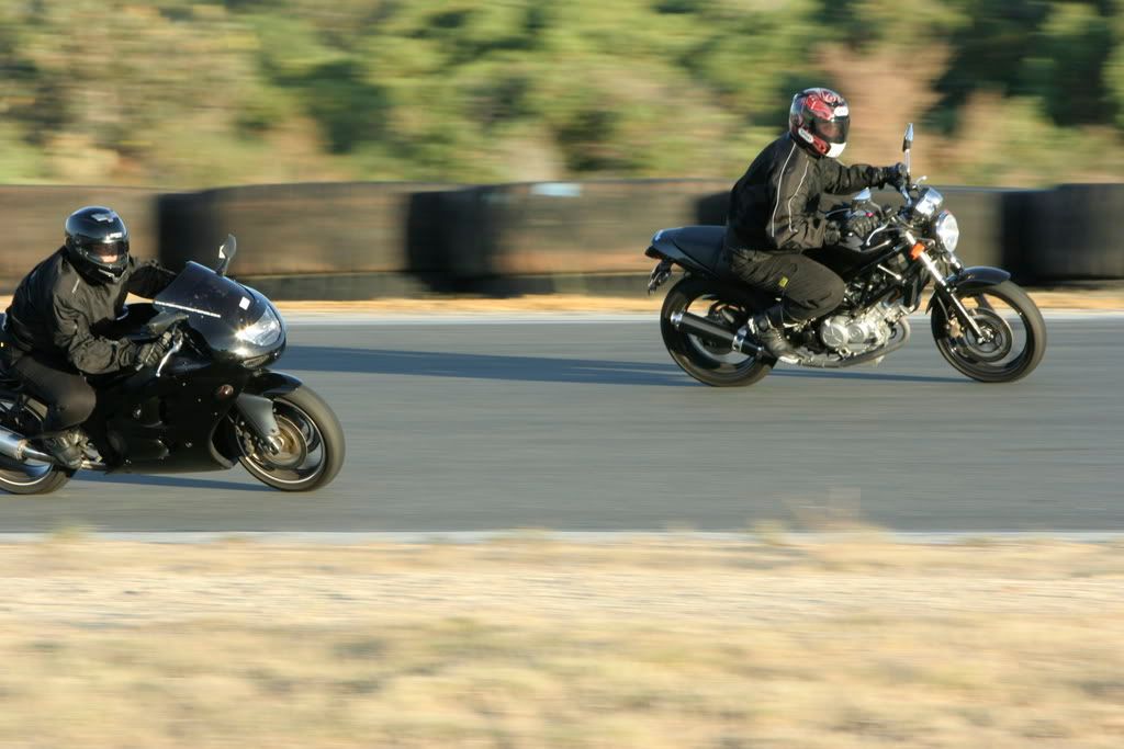 250cc vs 700cc bike lol overaking on he outside she was just too slow but as soon as the corner finished shed open her up and "Blat" she was away and then waiting for me to overtake her at the next corner.