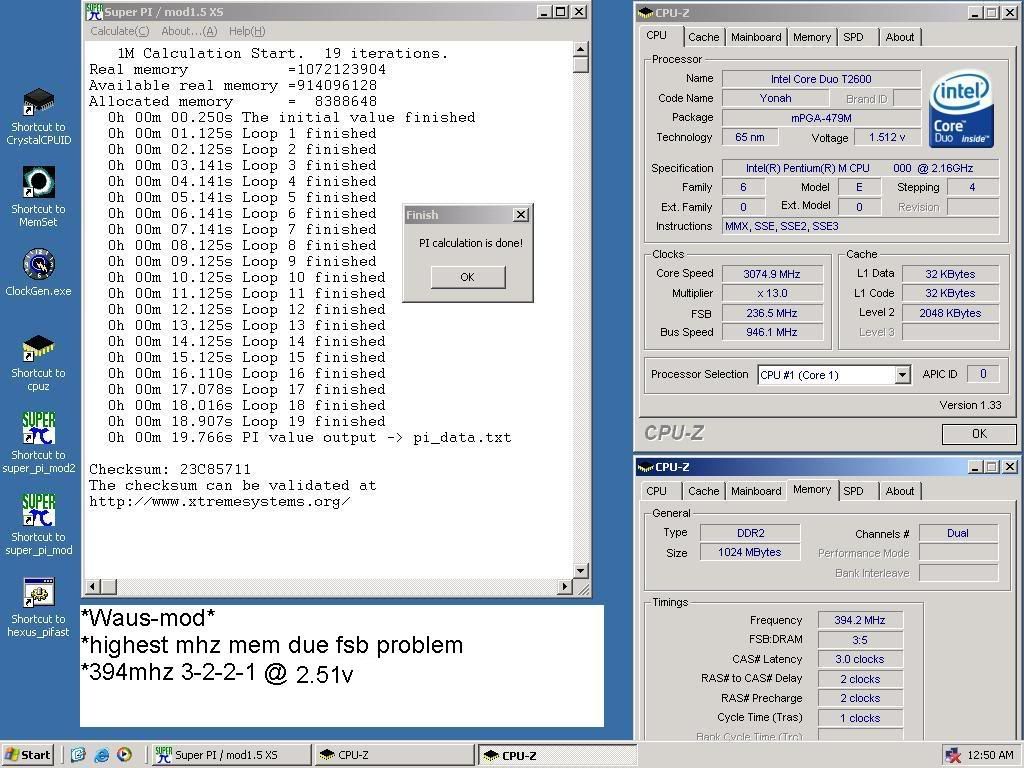modPI 1.5 XS 1M: 16.735s @3616.2MHz (FSB278.2MHz x 13)