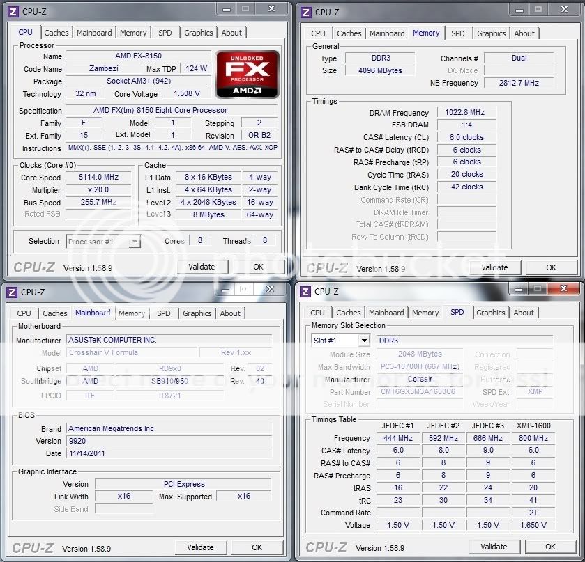 Here is my FX-8150 with my Corsair Dominator GT-1600mhz 6-6-6-20 hypers from my X58 setup