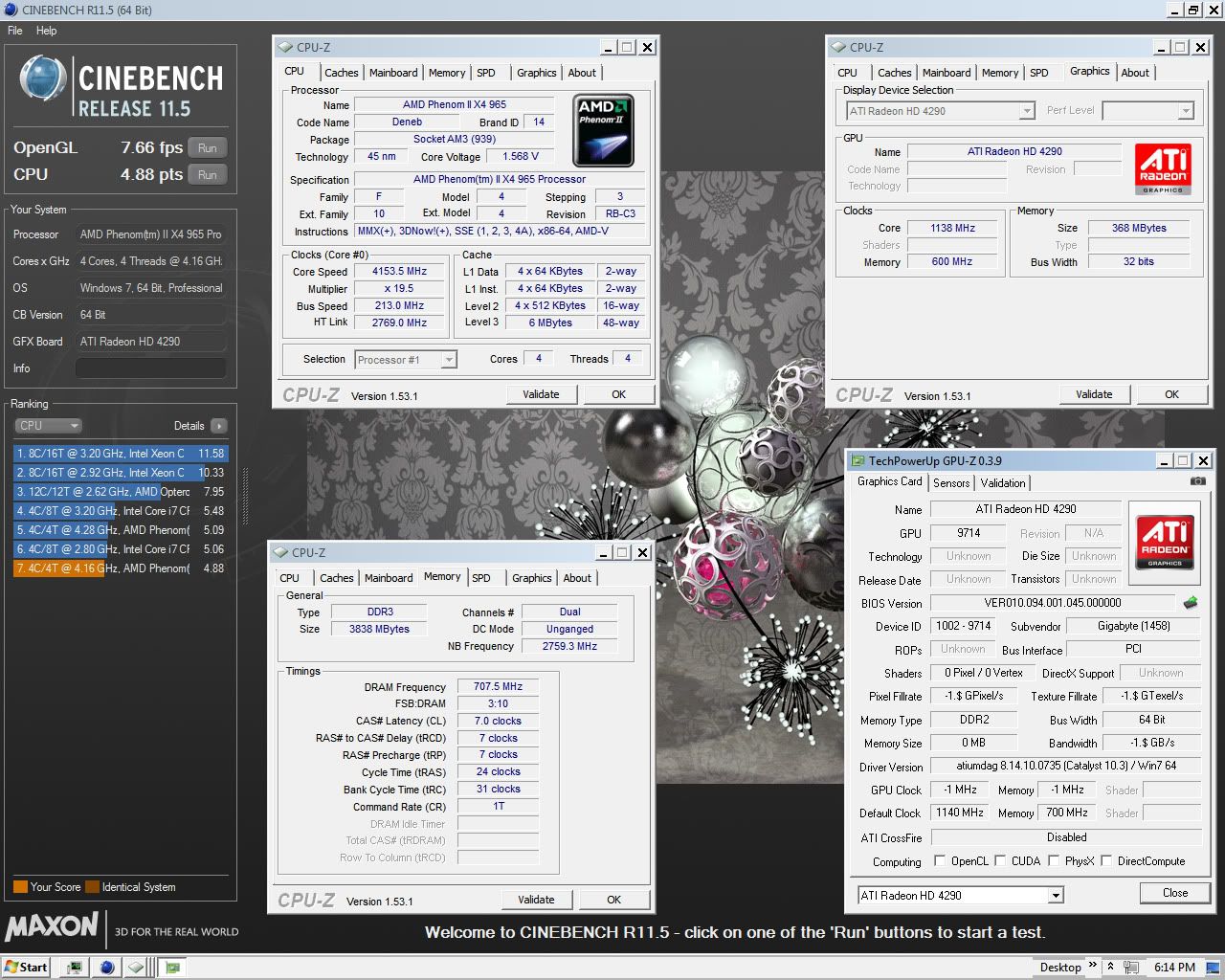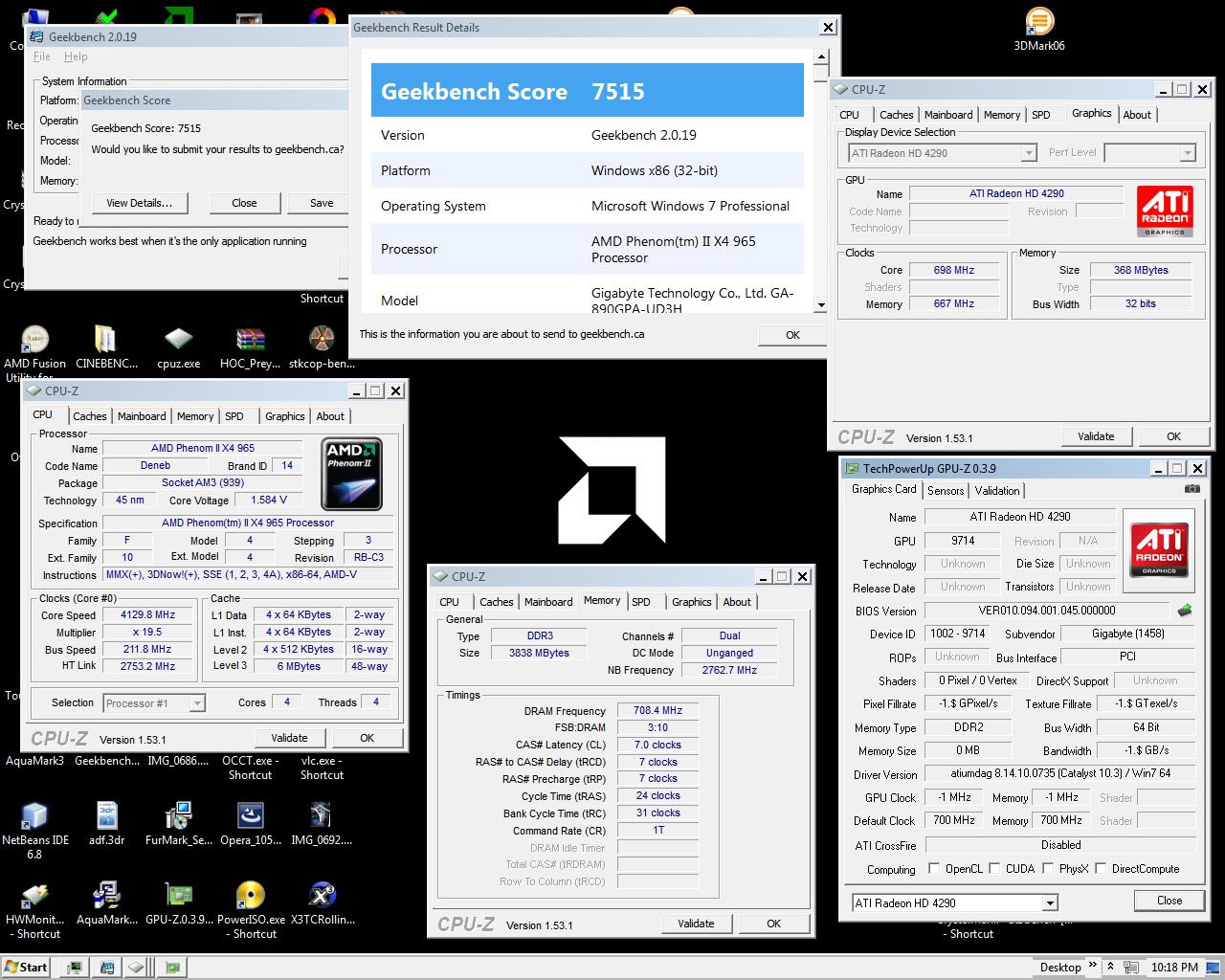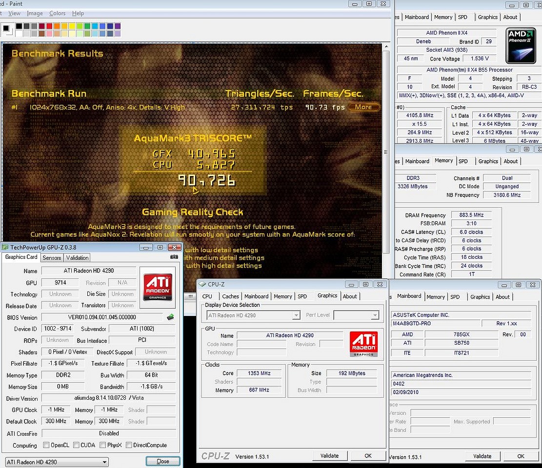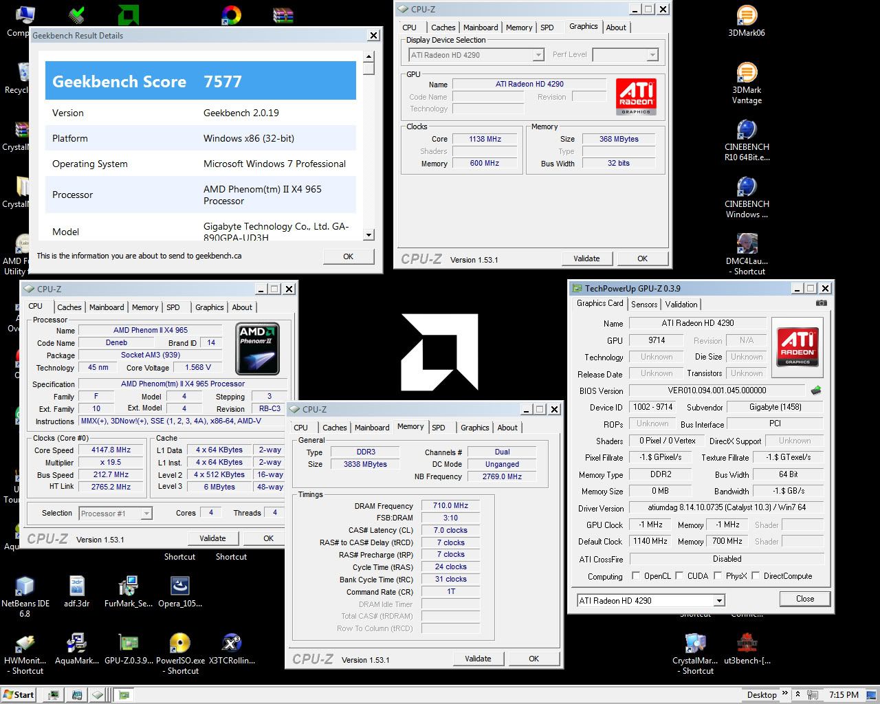 MSI 890GXM-G65 MB all tests @4.3GHz. on Windows 7 RC 64-bit.
