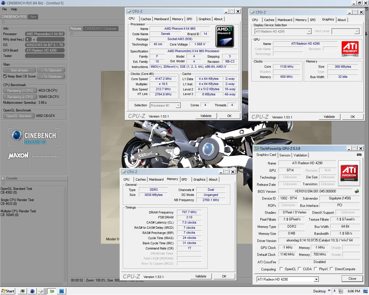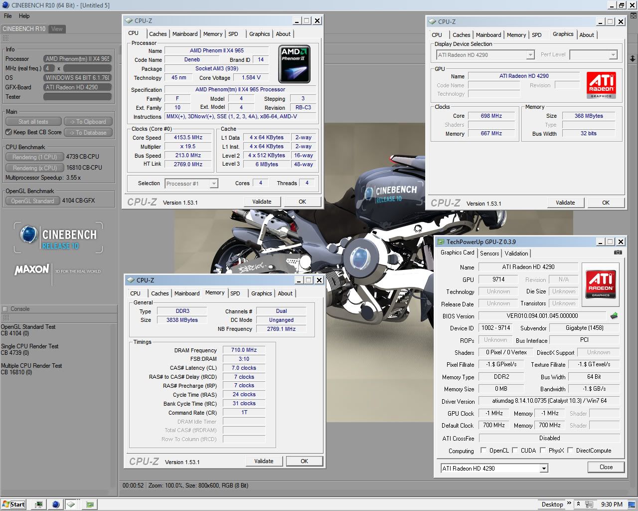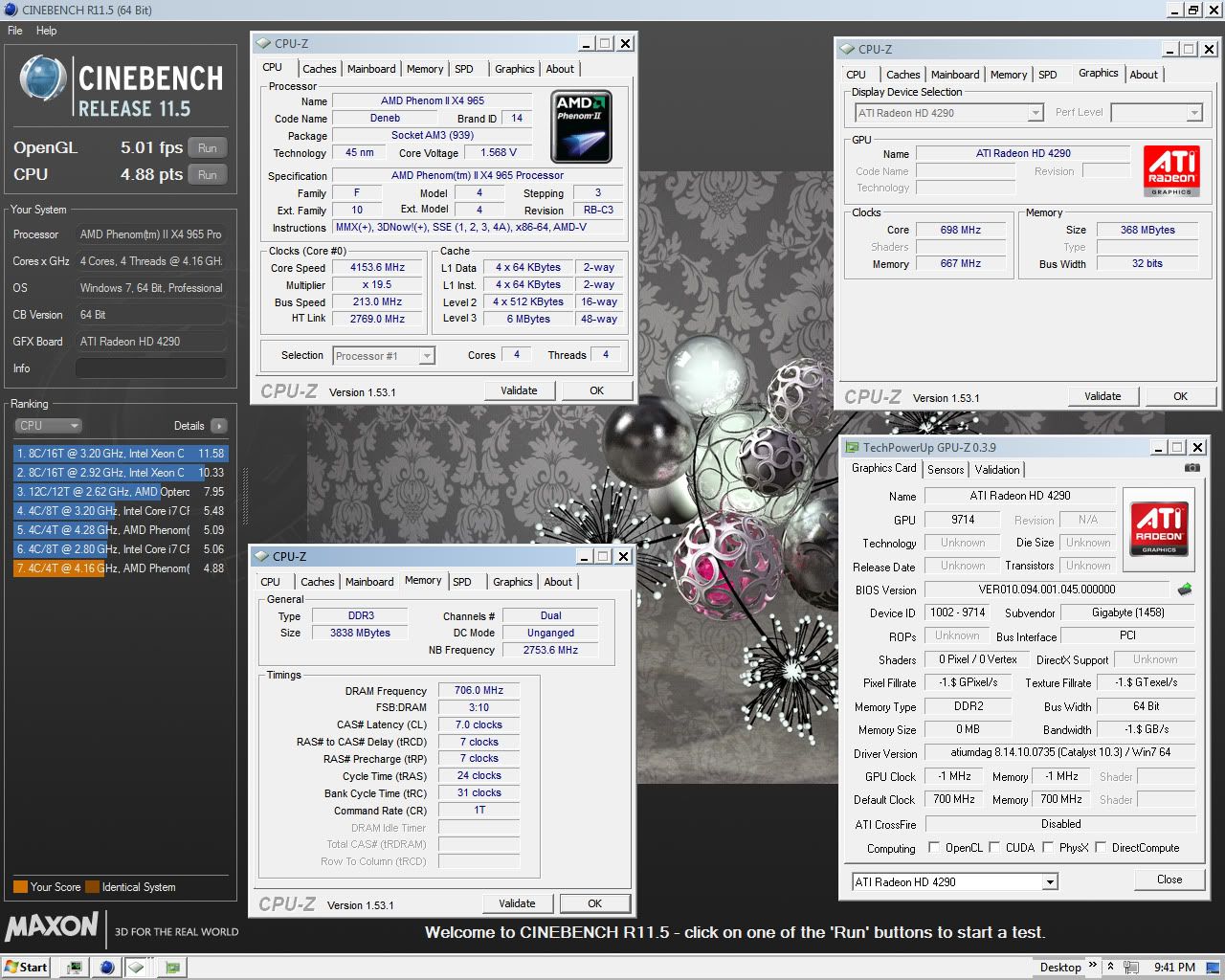 MSI 890GXM-G65 MB all tests @4.3GHz. on Windows 7 RC 64-bit.