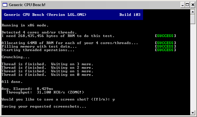 I just checked out the tech powerup forum. That's funny :D Release a CPU/RAM benchmark for fun just for a few guys to play with and leaderboards start cropping up on forums I've never been to. This is neat.