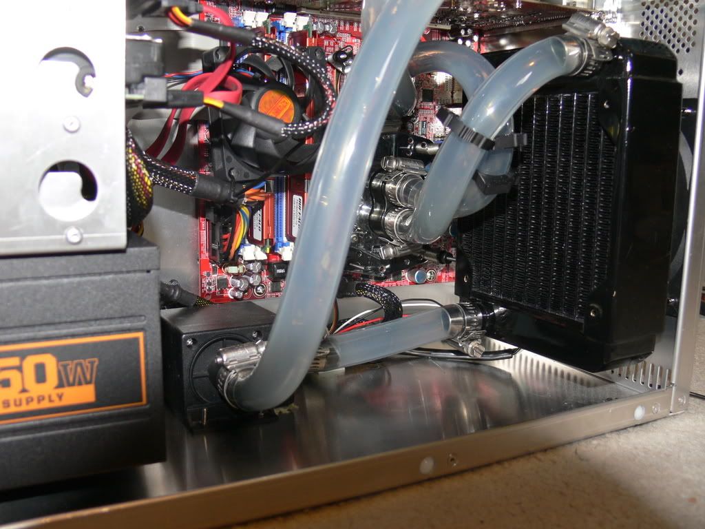Silverphoenix, that's a pretty nice set-up you have going! And yes, it is shocking to see that all internal. My biggest complaint about small cases with crammed watercooling is how much of a PITA it is to change everything out, it just becomes a big intricate puzzle. Always been jealous of those big builds where the rads were in a seperate compartment and they can change parts out no problems. And yes I'm speaking to all of you TJ07 owners!
