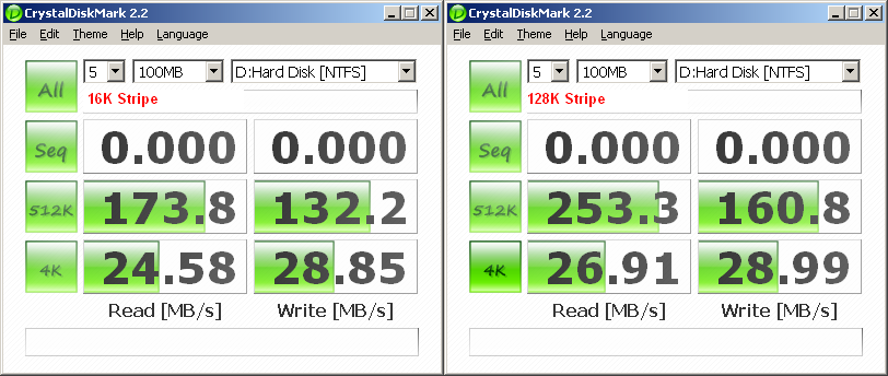 b) The stripe width (# of drives in the array) may affect performance significantly. I'm guessing a power of 2 is probably better, but I have no facts to back this up ... I'm tempted to buy another SSD, along with an add-in card, but damn this hobby is expensive! :ROTF: