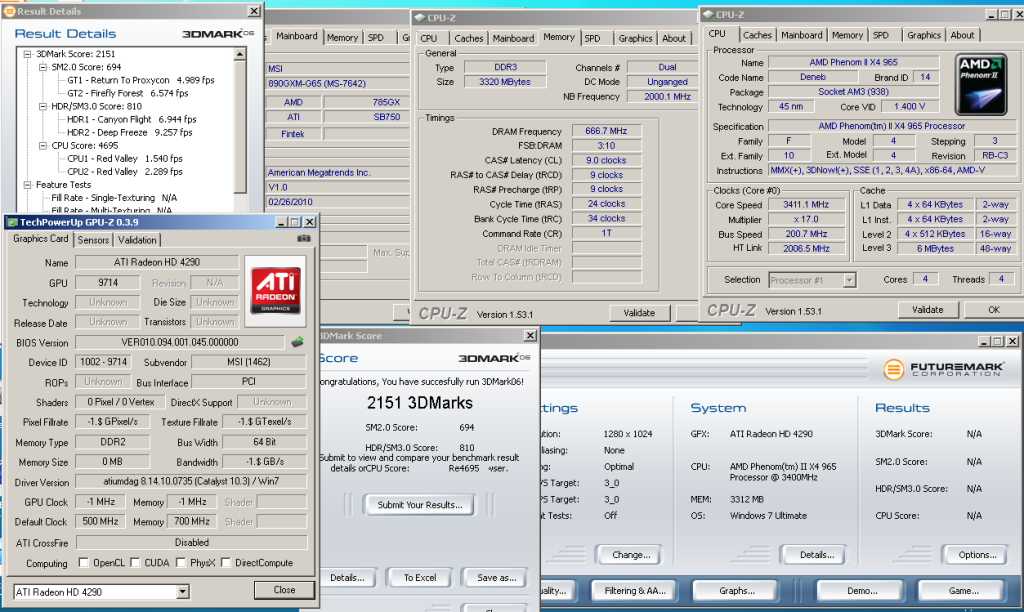 For reference a 4 core 965BE made no diff over a 2core 550 in 06 and this is the only bench in the list bench that benefits from multiple cores except vantage which if you want bragging rights for a cpu score thats about all you get, impacts total score not one bit.