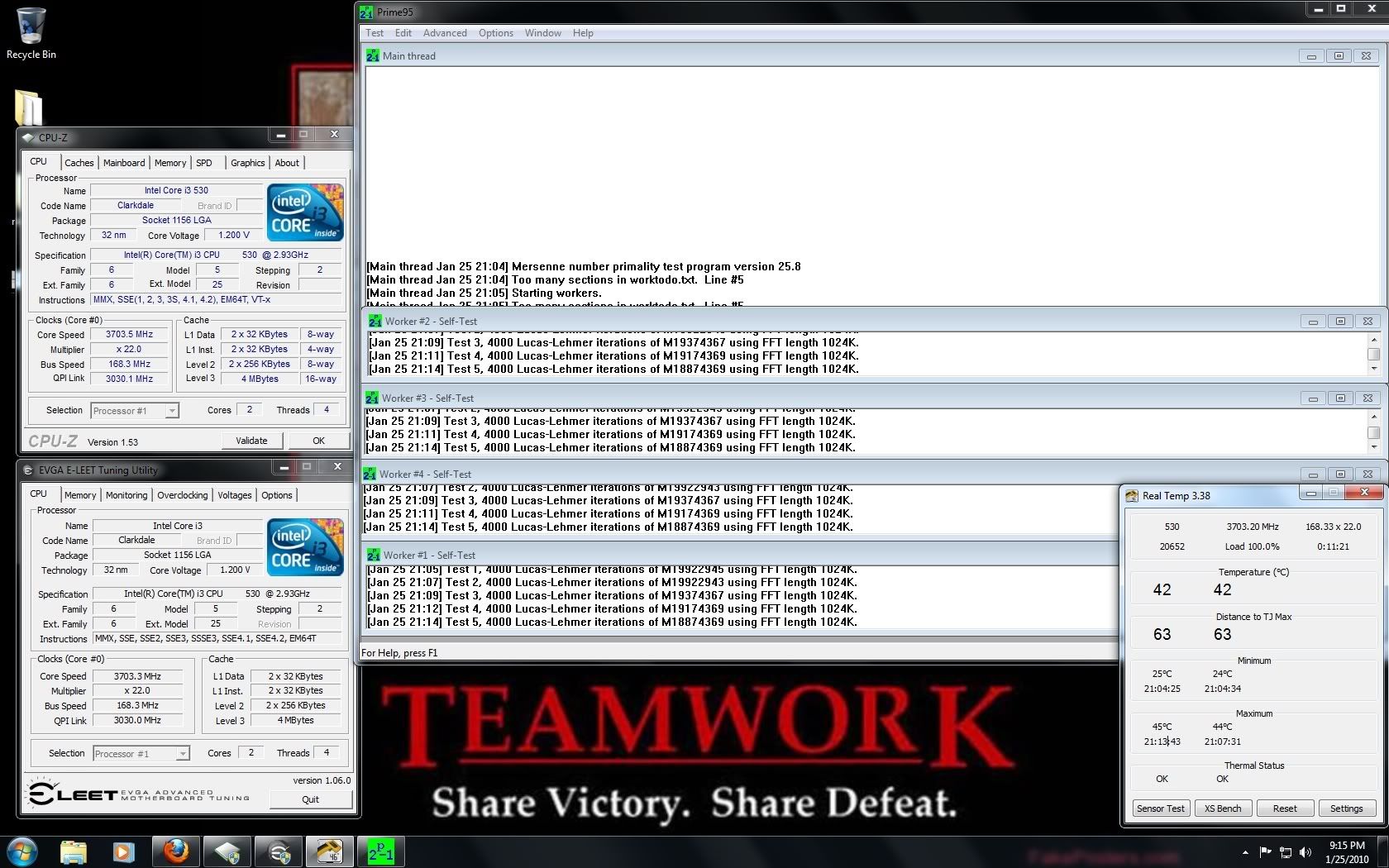 Secondary System: Core i3 530-eVGA H55-2x2GB Crucial DDR3 D9KPT -BFG GTX260-500GB Seagate 7200.12 HDD-Corsair HX620-NEC Dual Layer DVD Burner-Antec 300-Cooler Master Hyper 212+