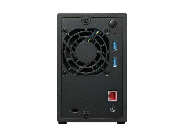 The rear configuration of the Asustor AS1202T uses a single fan to dissipate heat, and provides two USB 5Gbps ports and a 2.5 Gbps wired network port. In addition, the round button in the upper right corner is the power button of AS1202T, and there is a RESET reset pin jack below. Compared to the more advanced lines of Asustor, the AS1202T does not have an HDMI cable to directly transmit images to the screen, TV to reduce costs. There is a hand-turned screw at the top of the rear of the body, which can be opened to the outside after turning it open. There's also the DC input from the external power brick. One thing to note with NAS enclosures is the lack of any dust filters. You will need to remove the drive bays to give the inside a quick clean.