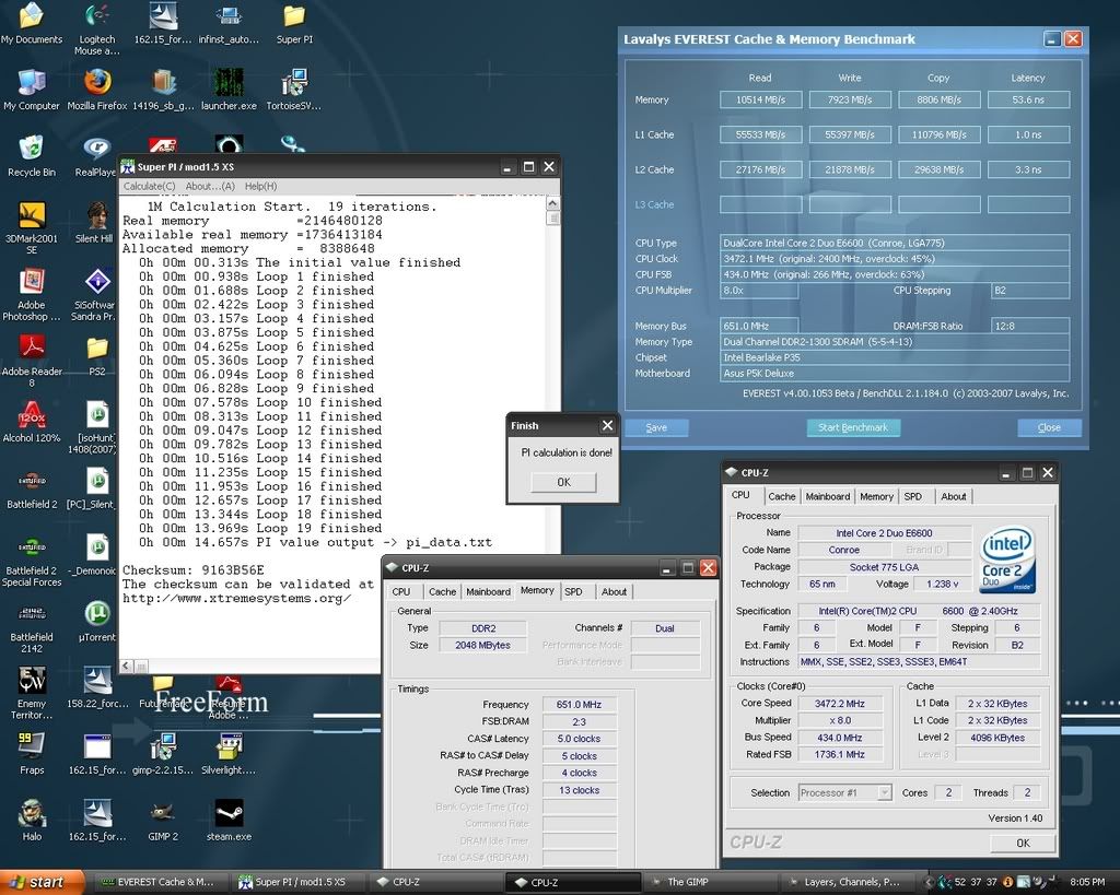 2x1GB Crucial Ballistix Tracer PC2-8500 @651.3mhz 5-5-5-15 at 2.45v