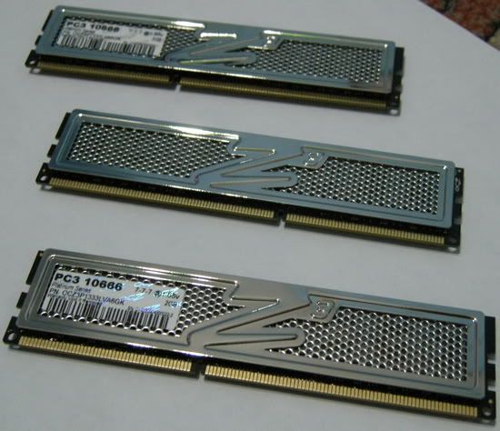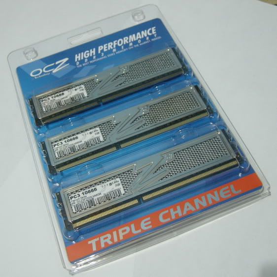 Got this kit a few days ago from OCZ USA, it's OCZ Platinum "Animal" series, 6 GB kit (2GB x3) rated at 1333 MHz (PC10666) CAS 7-7-7 @1.65v.